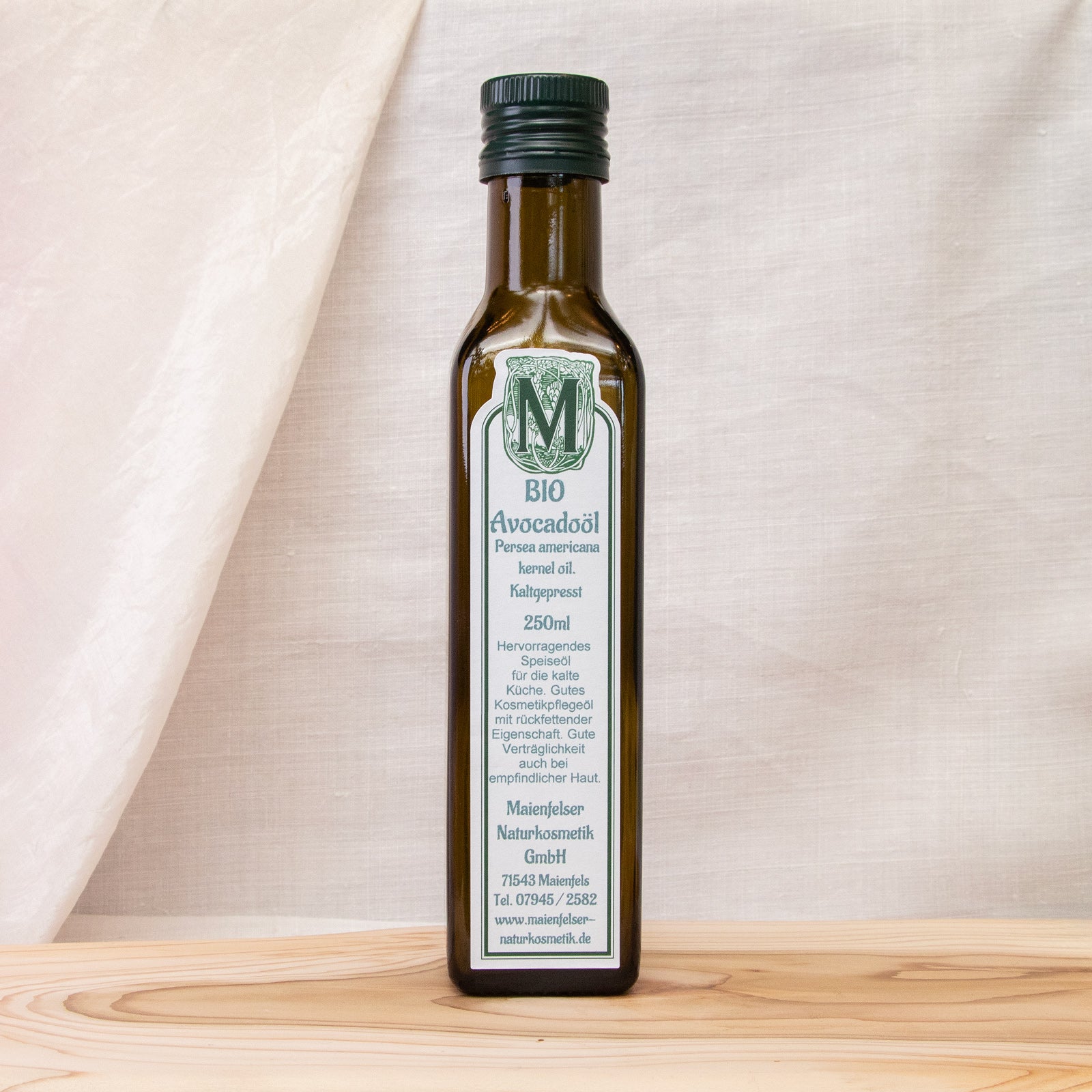 Avocadoöl gehört zu den wenigen Fruchtfleischölen wie Cocos, Olive und Sanddorn, aus denen direkt aus dem Fruchtfleisch ein Öl gepresst wird. Das Öl wird aus den überreifen Früchten gepresst und ist nativ von dunkelgrüner Farbe mit einem leicht säuerlich-fruchtigen Geruch. (Raffiniertes Öl ist eher hell und blass, meist geruchlos.) Unser Öl schmeckt nussig, mit einer leichten Kräuternote und arttypisch nach Avocado. Das Avocadoöl hat einen sehr hohen Gehalt an Öl- und Palmitinsäure und ist gespickt mit den öllöslichen Vitaminen von A, B, D und E.