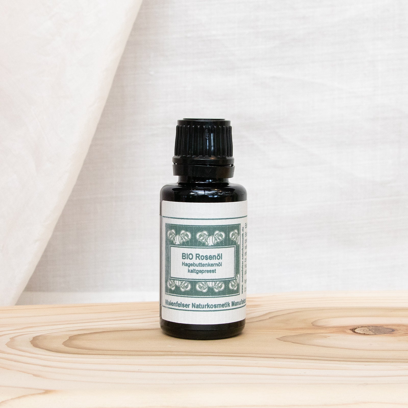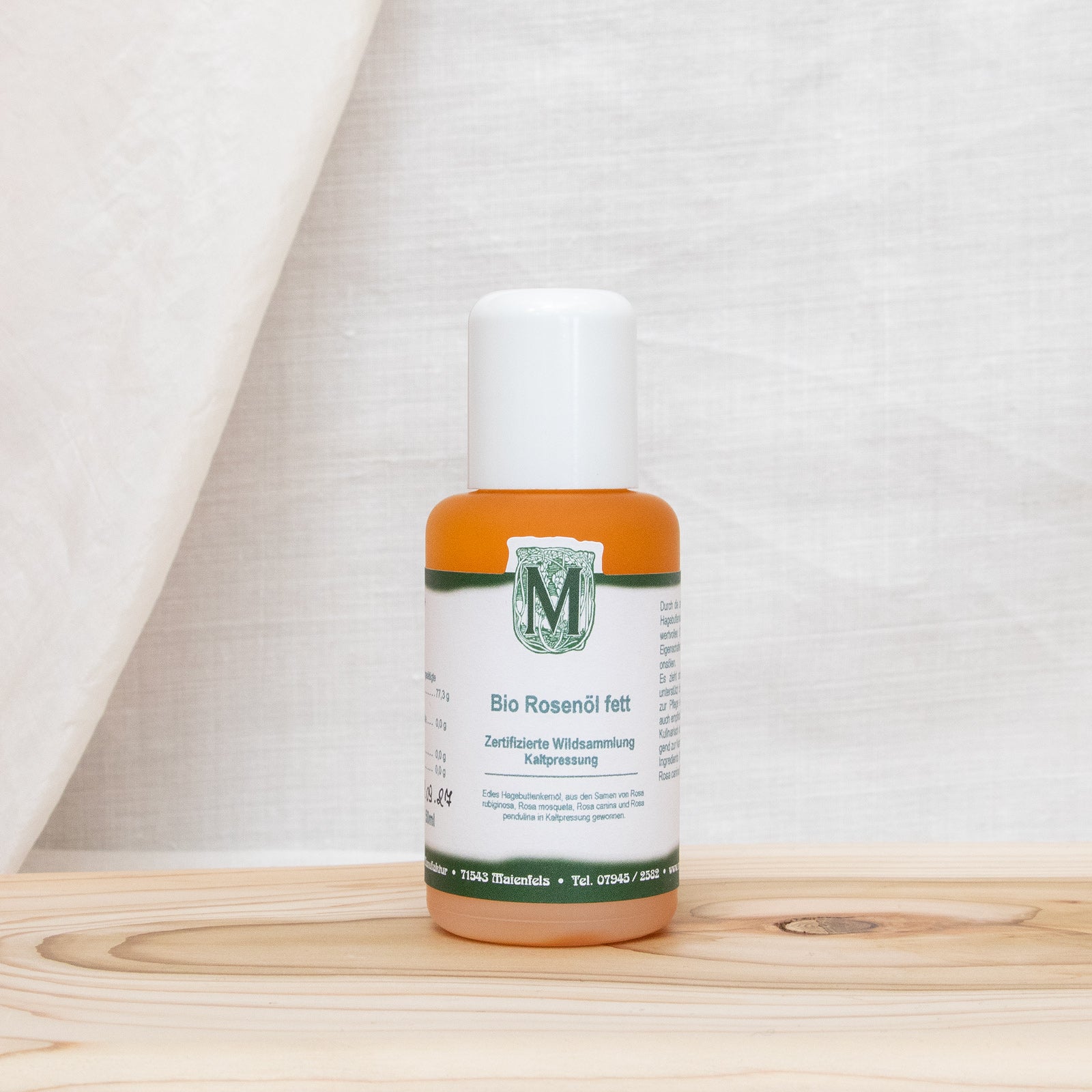 Kosmetische Verwendung: Wildrosenöl zählt zu den wertvollsten Ölen in der Hautpflege, da seine pflegende und hautregenerative Eigenschaft schon immens ist. Es gibt der Haut Elastizität, unterstützt die Zellerneuerung und eignet sich hervorragend bei reifer, trockener, schuppiger oder rissiger Haut. Es besitzt einen legendären Ruf zur Pflege bei der Nachbehandlung der Haut bei Verbrennungen und hat die Fähigkeit, den Feuchtigkeitsmantel der Haut zu stabilisieren, damit sie genügend Feuchtigkeit speichern kann. Es ist auch für empfindliche Haut hervorragend geeignet und zieht relativ schnell und gut ein. Wie auch beim Sanddornfruchtfleischöl enthält das Wildrosenöl kein Vitamin C. Dieses ist nur in der Fruchtschale beziehungsweise im Fruchtfleisch vorhanden, das aber nicht öllöslich, sondern nur wasserlöslich ist.