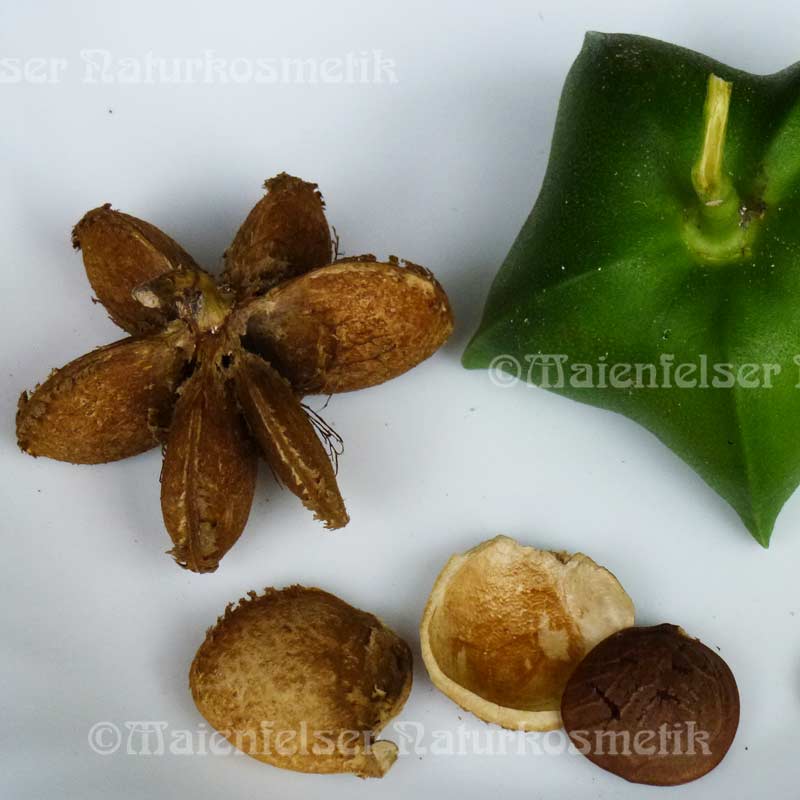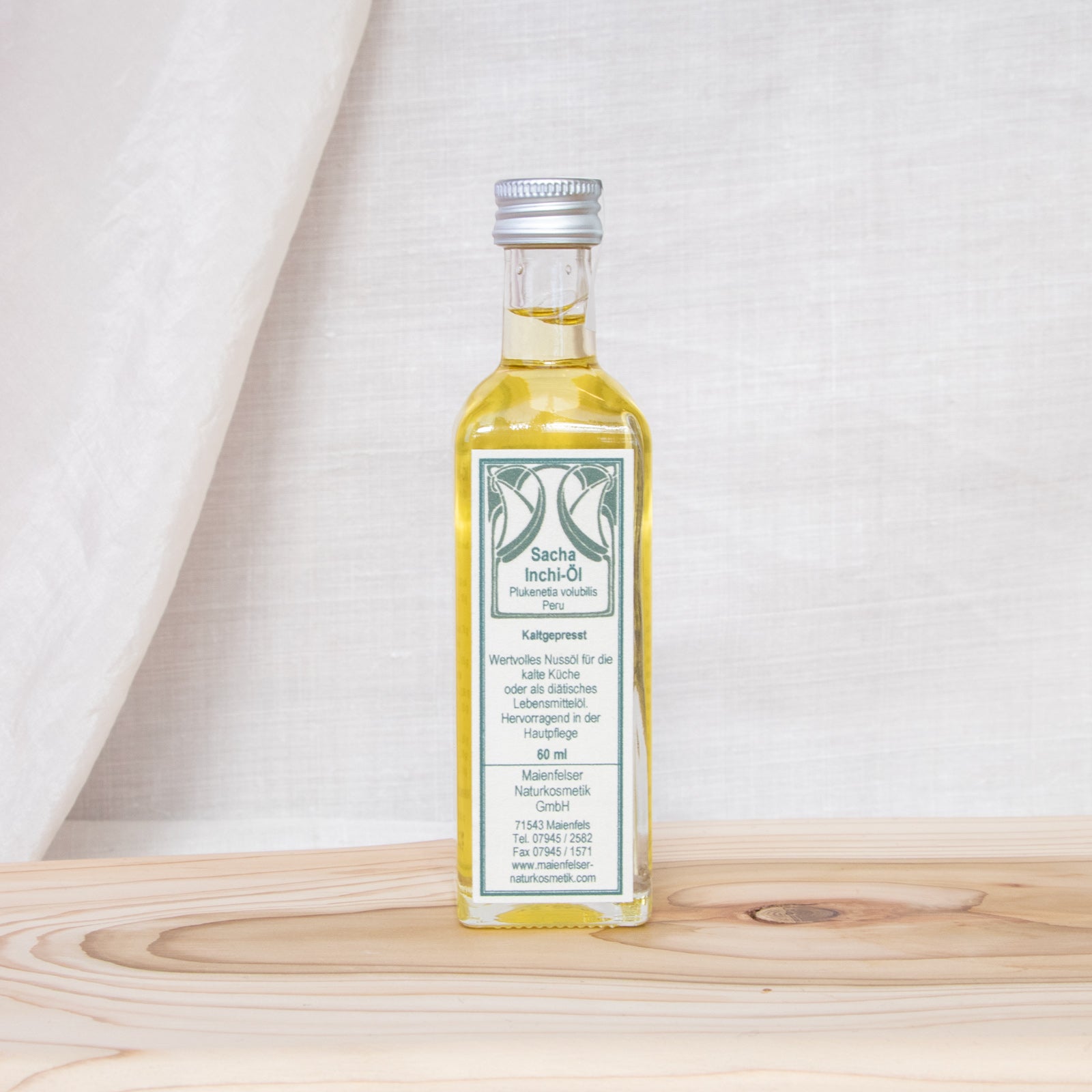 Sacha Inchi, die Inka-Erdnuss, stammt von einer Kletterpflanze und kommt vorwiegend aus Peru. Das gelbe Öl hat einen angenehmen Geschmack nach Kräutern mit einer grasigen Note. Das Ölsäure-Spektrum von Sacha-Inchi ist sehr außergewöhnlich. Kein derzeit bekanntes Pflanzen- oder Nussöl weist eine ähnliche Zusammensetzung auf, was es in der Ernähung und in der Kosmetik besonders hervorhebt. Nicht einmal Leinöl, das auch einen vergleichsweise hohen Anteil an der wertvollen Alpha-Linolensäure enthält, kommt diesem Öl nahe. Durch den hohen Vitamin-E-Anteil ist das Sacha-Inchiöl zudem sehr lange haltbar.