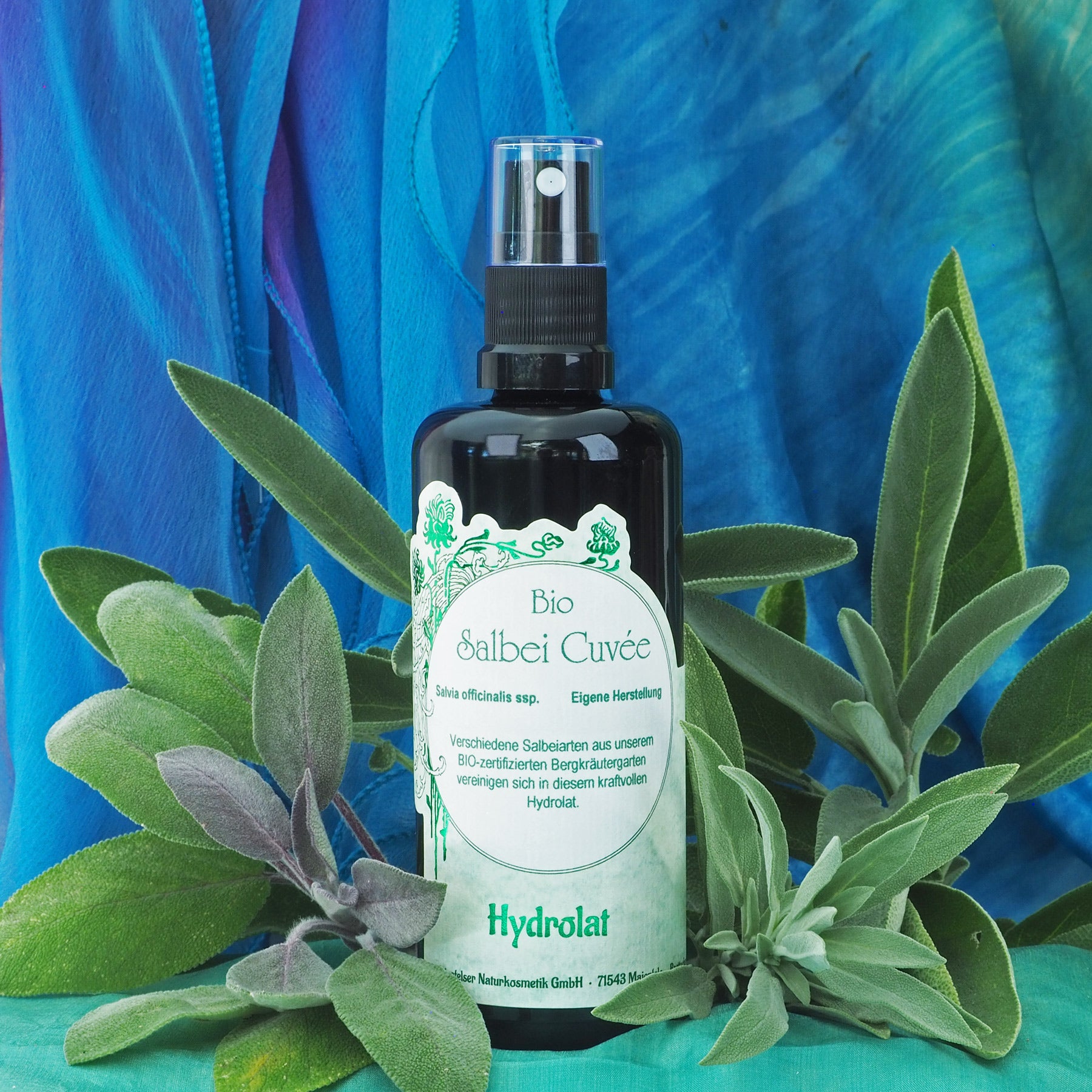 Aus den Blättern destilliert. Verschiedene Salbeiarten vereinigen sich in diesem kraftvollen Salbeihydrolat. Unterschiedliche Duftvariationen durch verschiedene Erntezeiten. Sehr schönes Hydrolat mit vielen Untertönen. Auch angenehmer Raumduft und Brunnenwasser.