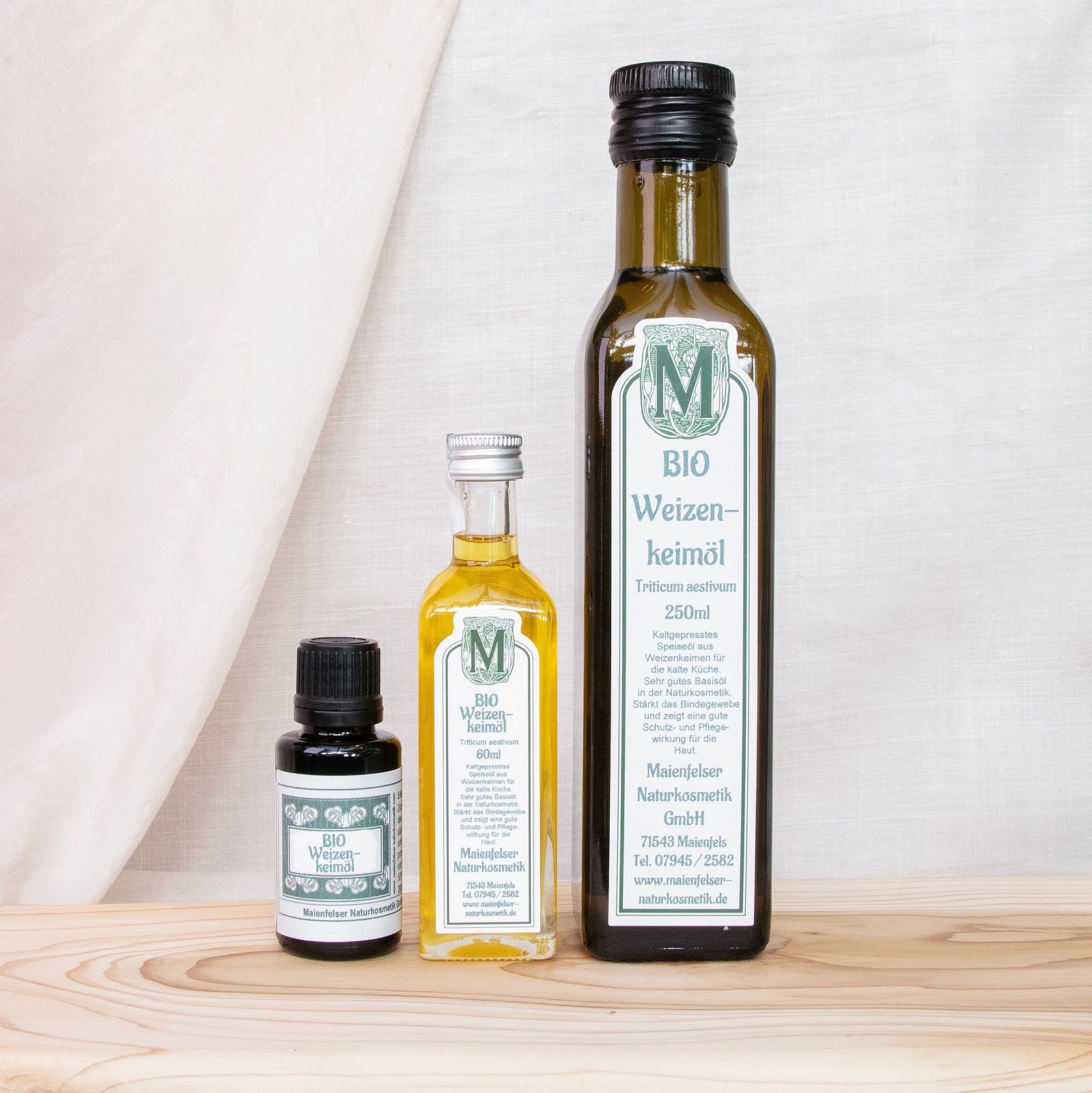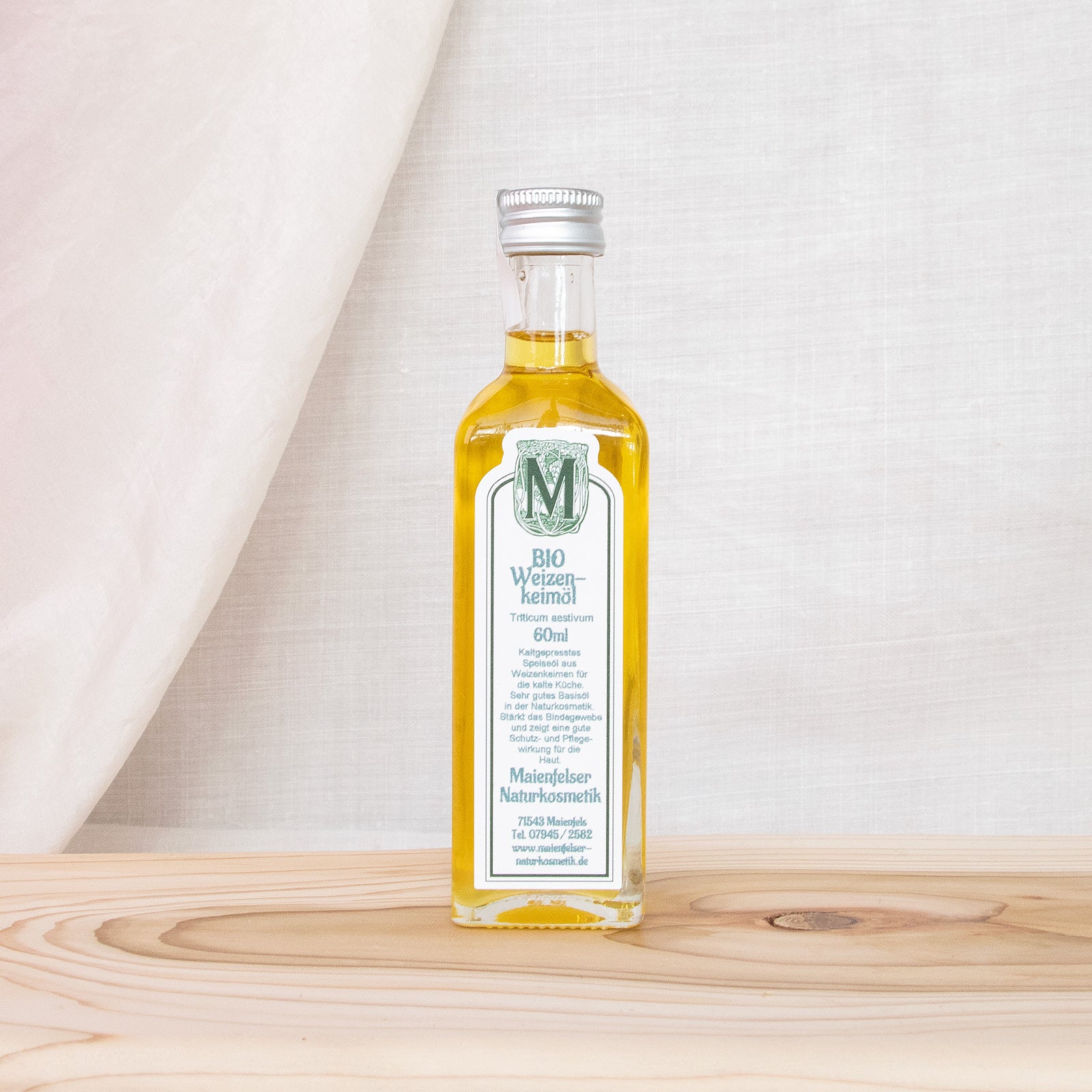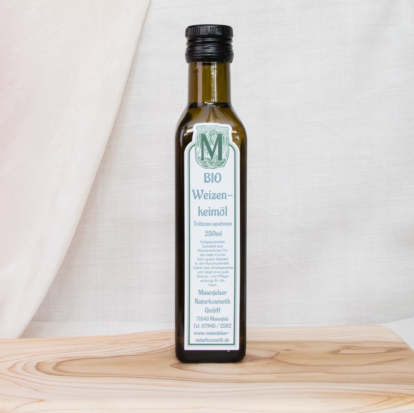 Das Weizenkeimöl wird, wie der Name schon andeutet, aus den Keimlingen des Weizens gewonnen. Bei der Mehlherstellung werden diese getrennt, so dass man nur aus den gehaltvollen Keimlingen das Öl pressen kann. Von gelb-orangener Farbe zählt das Weizenkeimöl durch seinen hohen Tocopherol- und Linolsäuregehalt zu den wertvollsten Ölen.